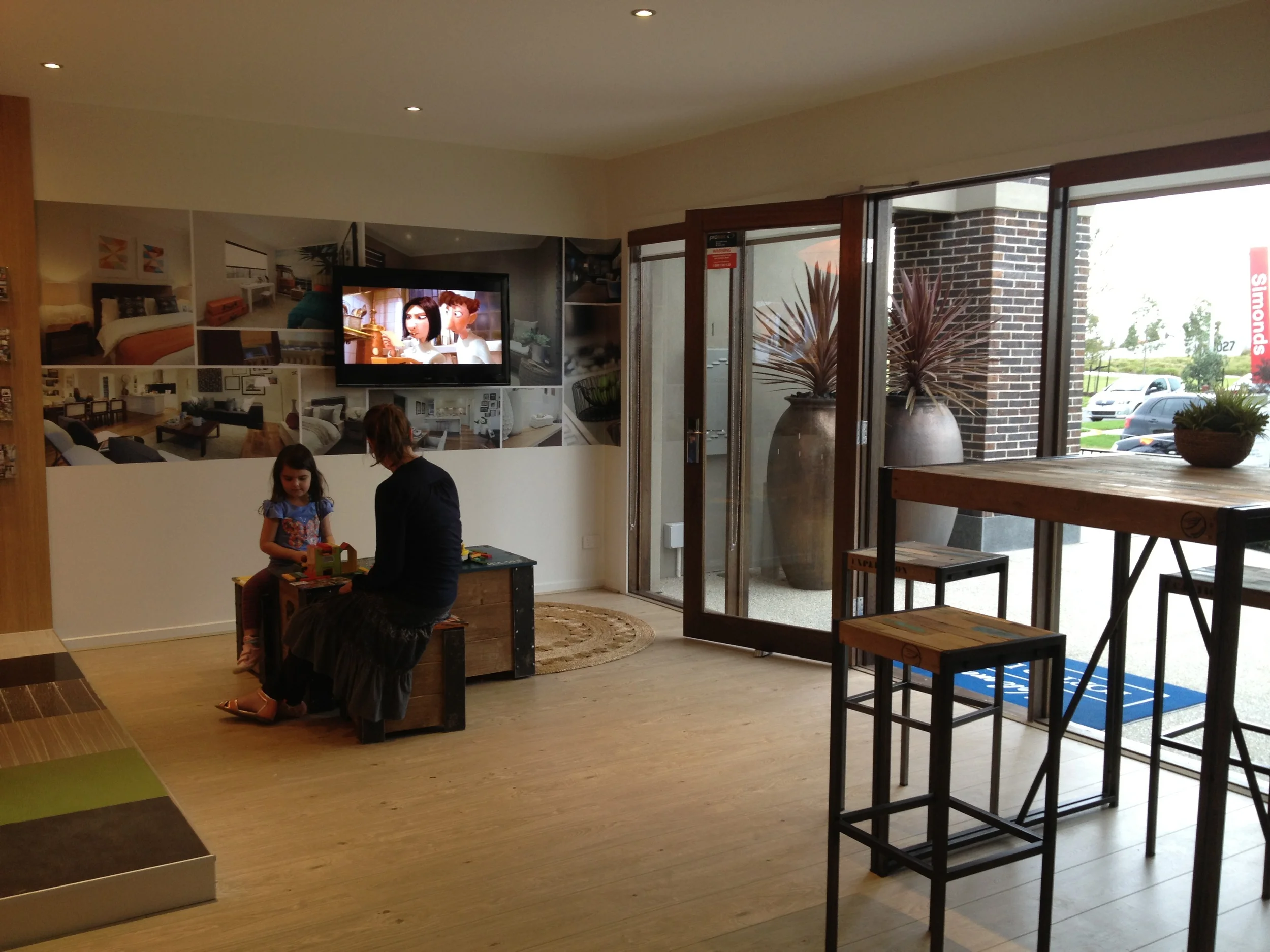 A zone where family members, not up for a full tour of the display homes site can wait and relax. A quite space but also connected to the flow of customers moving through.