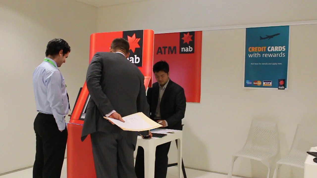 03] Experience testing: a recent rapid re-design of a new ATM interaction that saw the design team, operating a mix of digital and "Wizard of Oz" prototype (a man hiding in a box) with users. Comprehension, flow, and how users would react to exception cases was evaluated. Because the prototypes are all developed in the centre, tweaks were able to be incorporated and re-tested throughout the day. Mark Appleford explains " The immersion centre allows us to suspend belief slightly, to break the "head-office mindset" so that we get a more human, more realistic result. Doing this in a controlled environment is much easier, and cheaper for us than doing trials in the field. It means we make mistakes here, not in our branches"